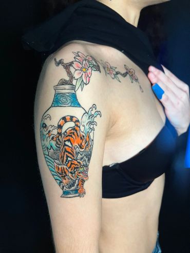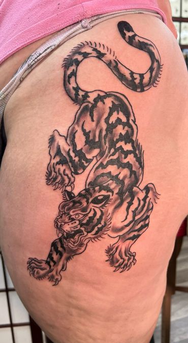 Howdy, Thank you for looking at my work! After graduating from art school I went straight into tattooing. I have been tattooing for 3 years, and I absolutely love the process! I enjoy tattooing Japanese Traditional inspired work, bold chrome designs, bio-mech, blackout, and black & grey. I can't wait to give you your next piece of permanent art!